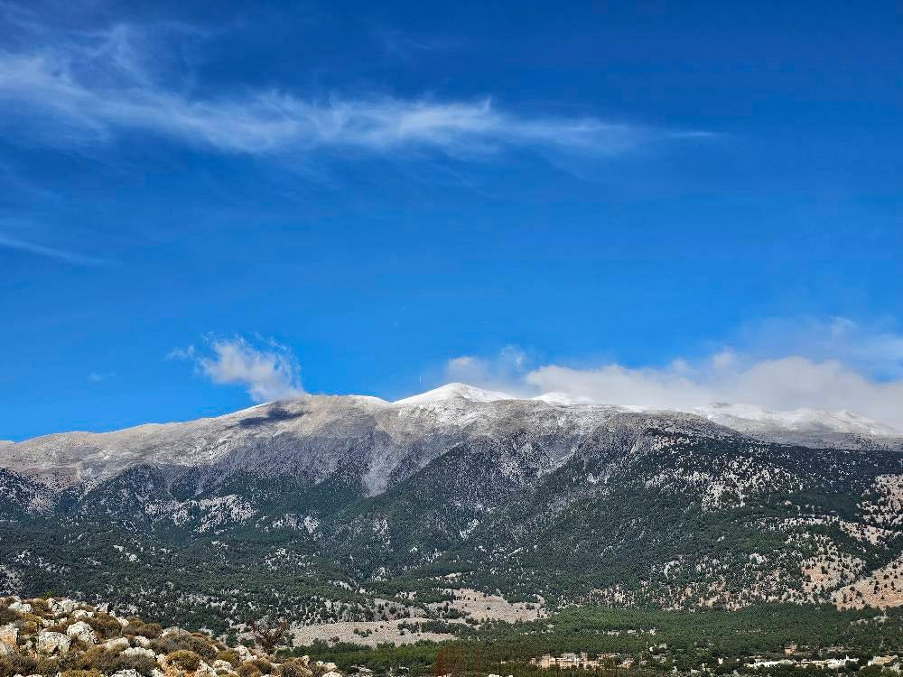 Το τσουχτερό κρύο έχει κάνει την εμφάνιση του τα τελευταία 24ωρα με τα πρώτα χιόνια να έχουν κάνει την εμφάνιση τους στις κορυφές του νησιού.