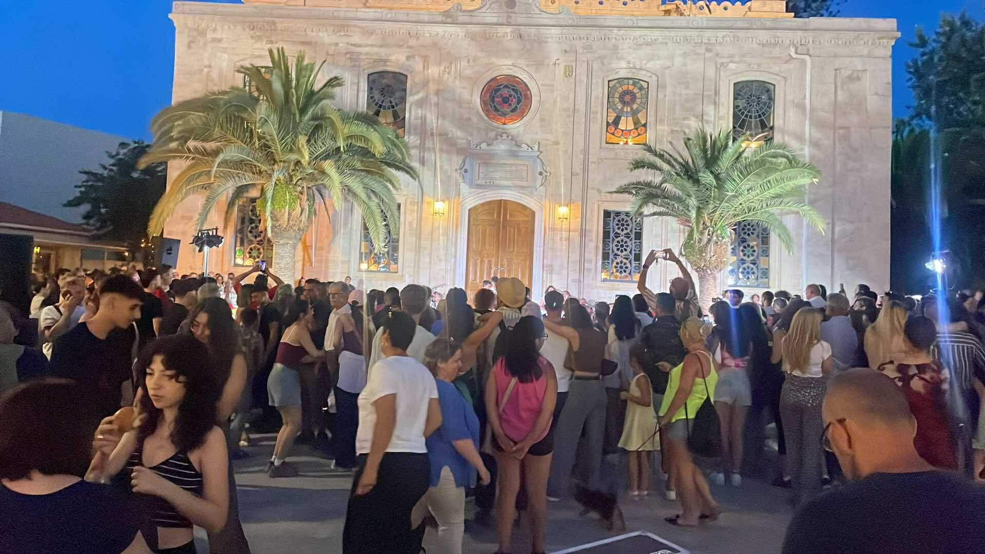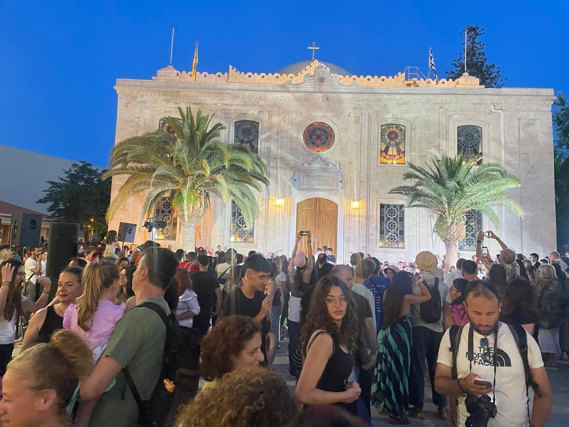 Στην πλατεία του Αγίου Τίτου, συνέπραξαν δεκάδες ερασιτέχνες παίζοντας μπεντίρ μαζί με διακεκριμένους μουσικούς, πάνω σε σκοπούς της Κρήτης και της Κύπρου.