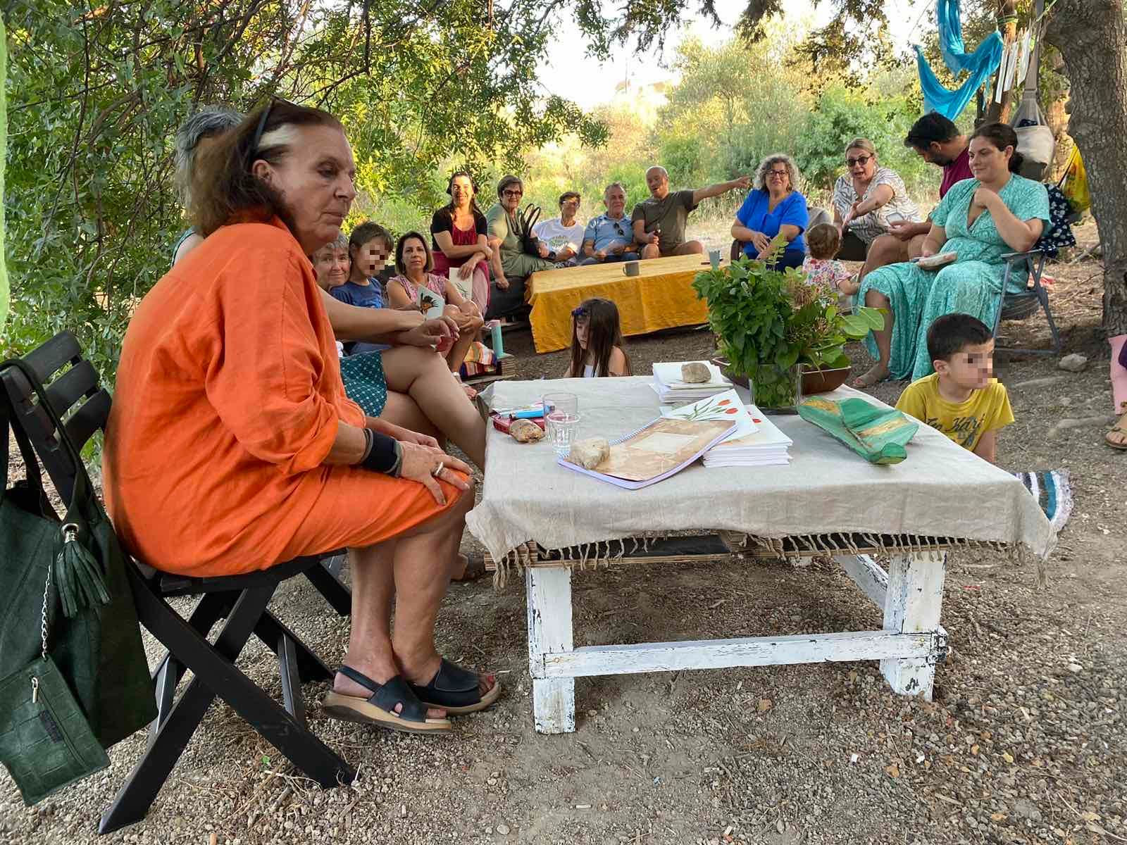 Και όσο το σούρουπο έπεφτε μ ένα απαλό αεράκι να δροσίζει μικρούς και μεγάλους, σε μια εξοχή που έμοιαζε άλλης εποχής, μέσα στο πράσινο και μακριά από το πολύβουο της πόλης, τόσο σκέψεις, προβληματισμοί αλλά και σπίθες αισιοδοξίας από τους παρευρισκόμενους πήραν τη σκυτάλη της αφήγησης .
