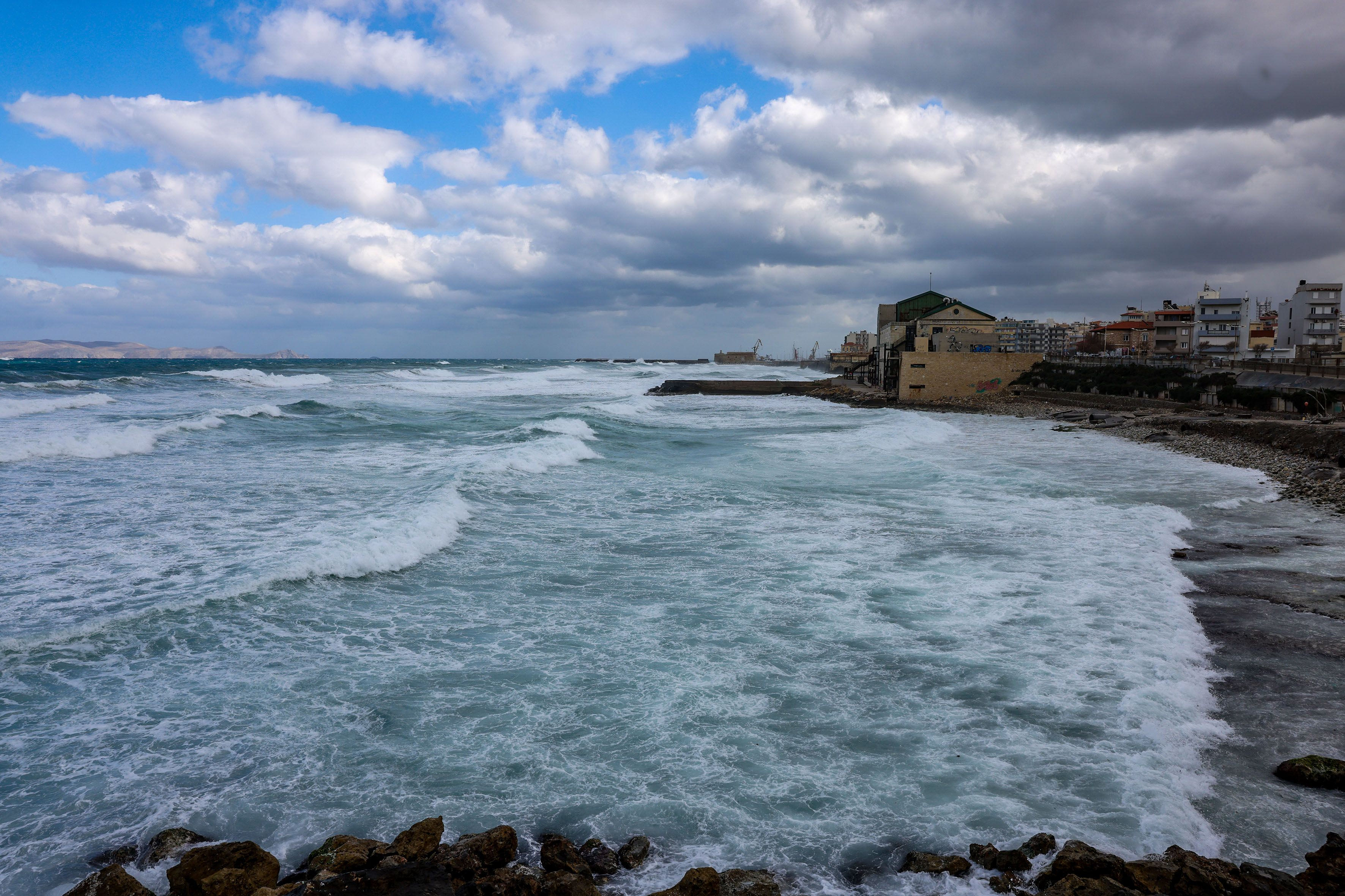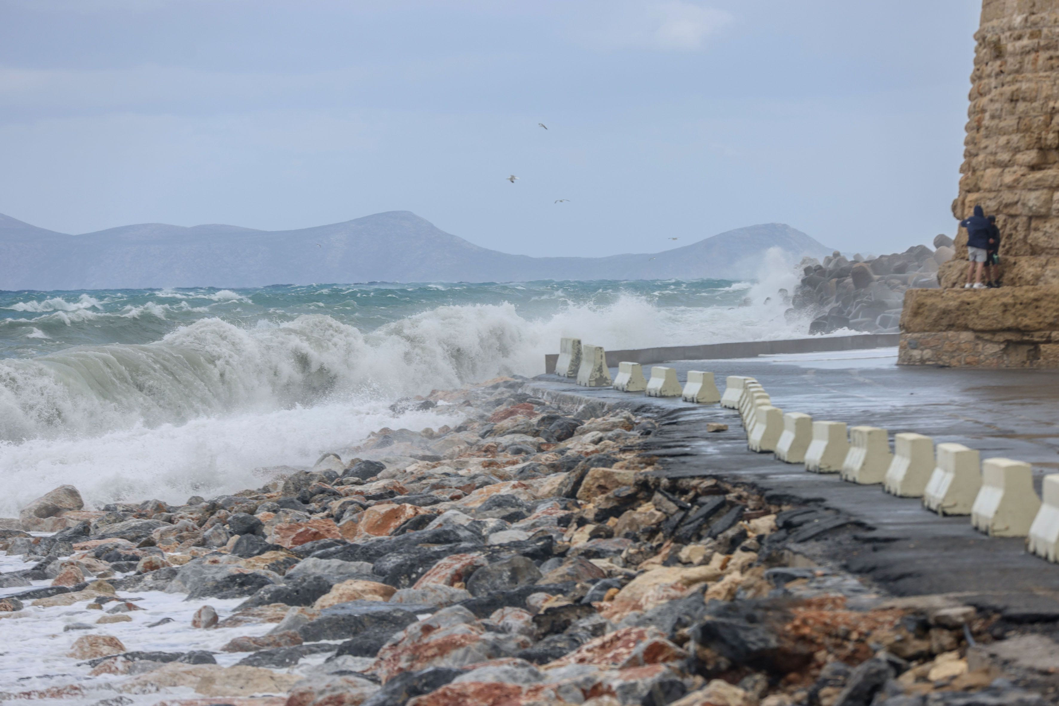 Τα κύματα που προκάλεσαν οι δυνατοί άνεμοι δημιούργησαν εντυπωσιακά στιγμιότυπα στο παραθαλάσσιο μέτωπο του Ηρακλείου.