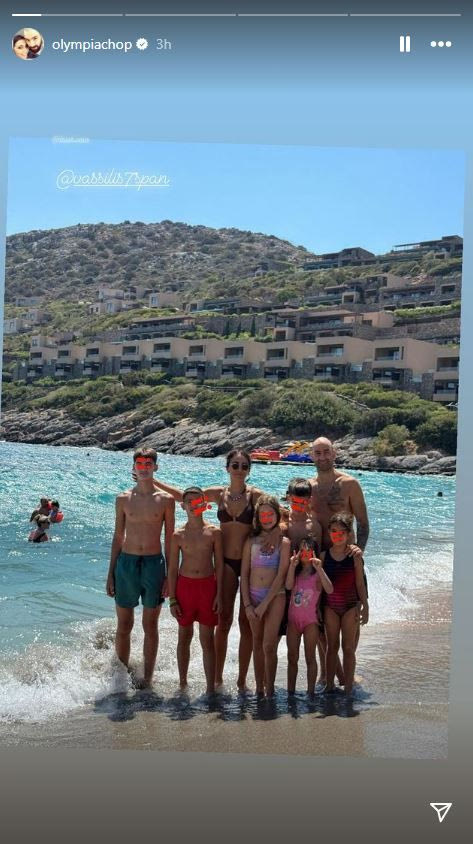 Η σύζυγός του, Ολυμπία Χοψονίδου δημοσίευσε στον προσωπικό της λογαριασμό στο Instagram δύο υπέροχες φωτογραφίες με τους δύο αγκαλιά αλλά και με τα παιδιά τους. σε παραλία κάτω από γνωστό ξενοδοχείο, το οποίο η οικογένεια επισκέπτεται σχεδόν κάθε χρόνο.