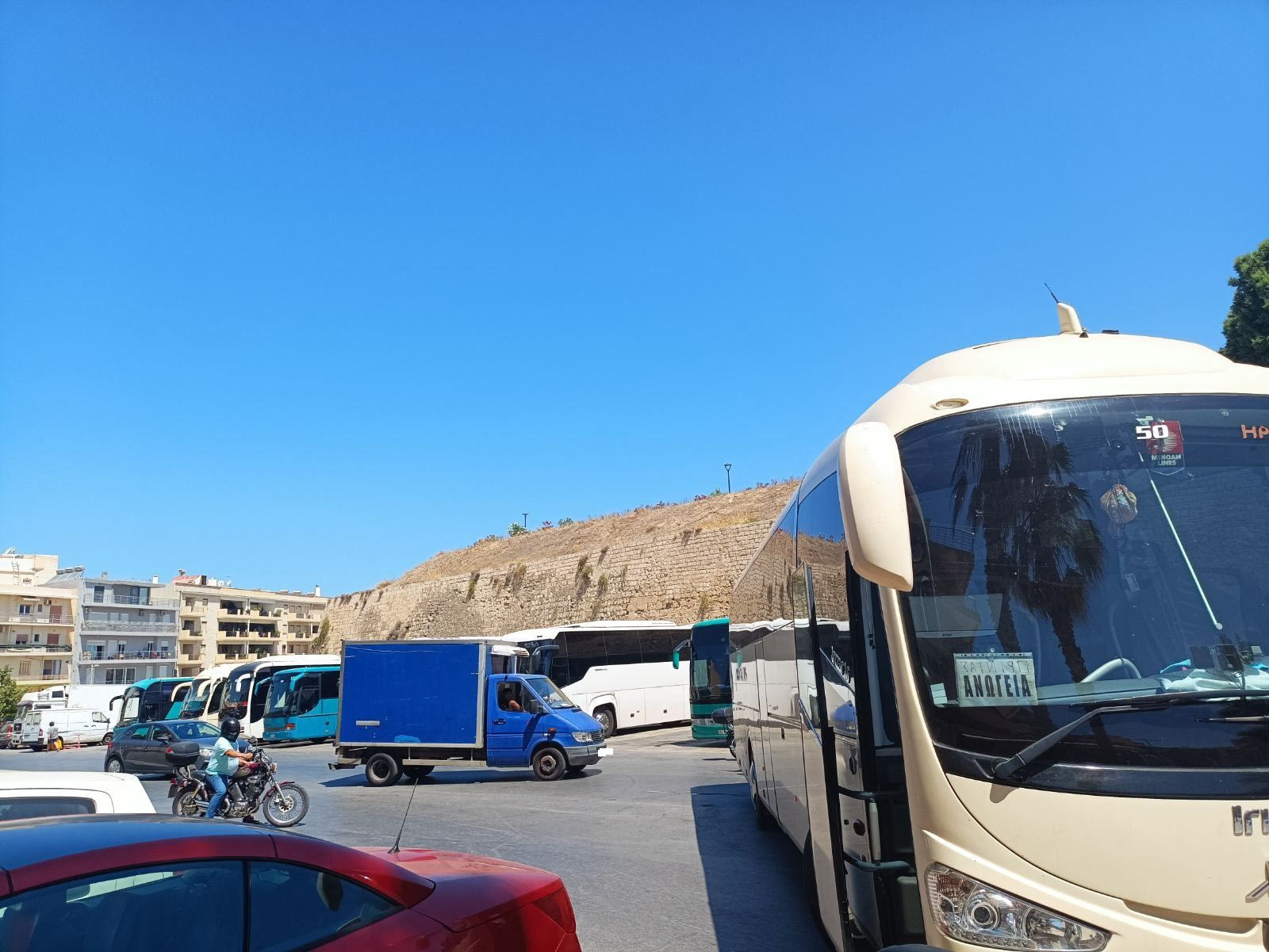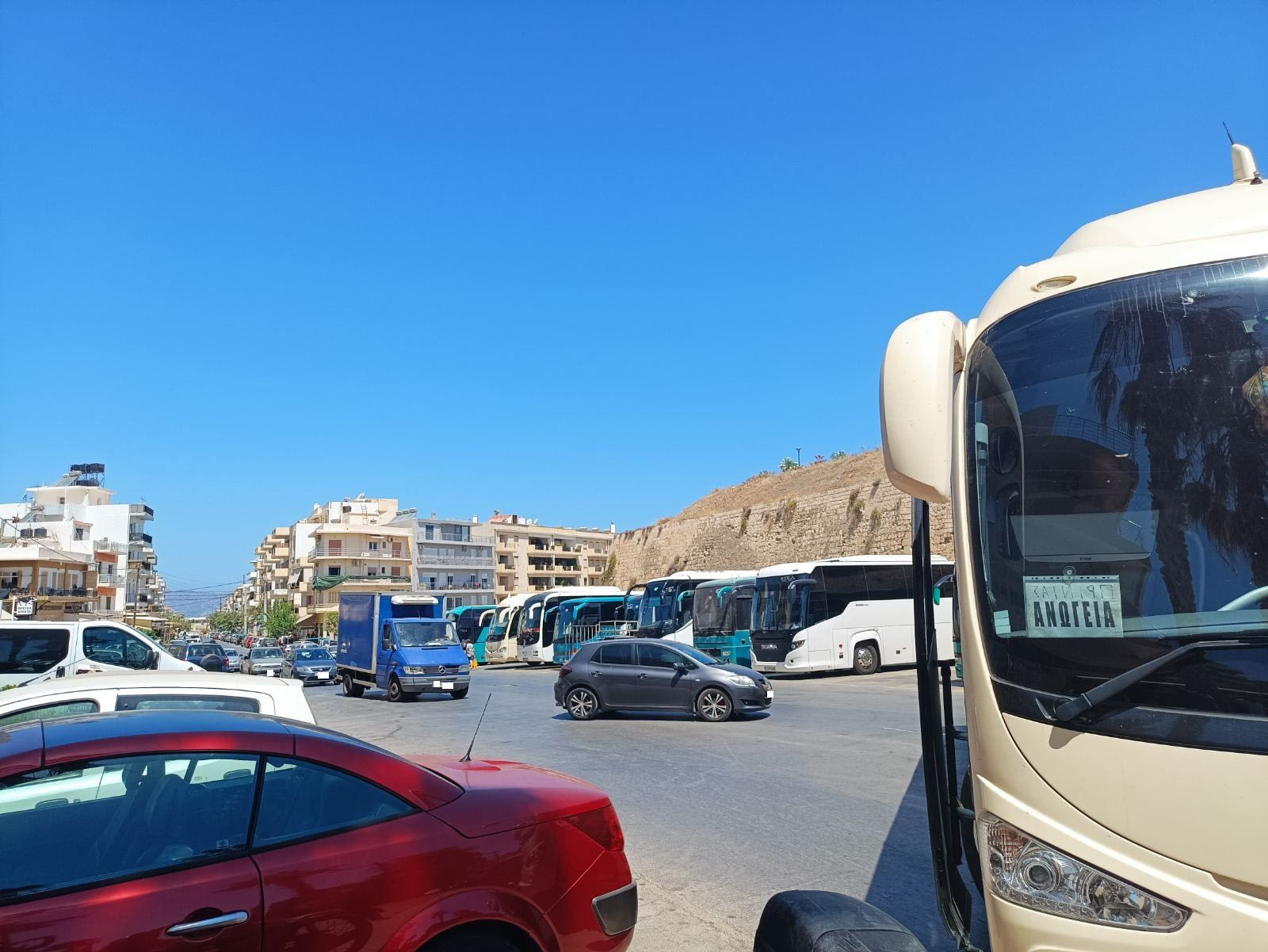 Τα λεωφορεία δεν μπορούσαν να περάσουν με αποτέλεσμα να κλείσουν το δρόμο και τα διερχόμενα οχήματα να κάνουν μανούβρα για να περάσουν.