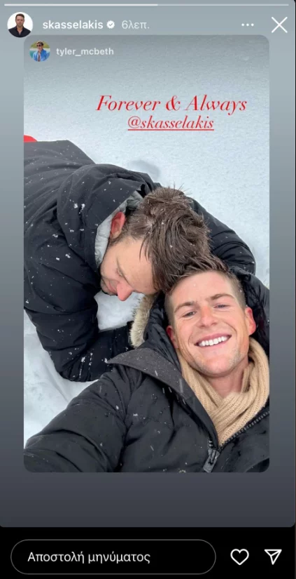 Οι δυο τους μοιράστηκαν μία φωτογραφία, στην οποία είναι ξαπλωμένοι στο χιόνι, δίπλα δίπλα, με τον τίτλο «Forever & Always», σε ελεύθερη μετάφραση «Για πάντα μαζί».Την ανάρτηση έκανε πρώτος ο Τάιλερ και ακολούθησε με repost ο πρόεδρος του ΣΥΡΙΖΑ.