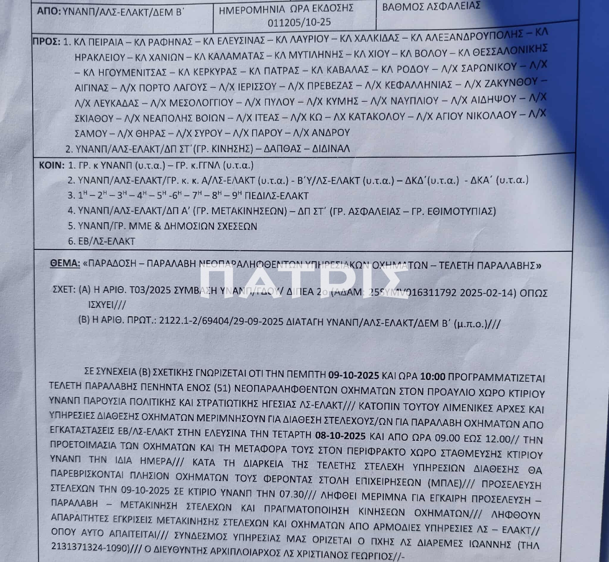Η καταγγελία στο patris.gr, αναφέρει χαρακτηριστικά « 1) Κατασπατάληση δημοσίου χρήματος 20000 ευρώ οδοιπορικά έξοδα στελεχών ΛΣ επειδή γουστάρω τα αμάξια δεν τα δίνω τώρα θα τα δώσω οπότε θέλω ή μπορώ , 2) πλήρης απαξίωση 102 στελεχών που τους έφεραν τσάμπα από όλη την Ελλάδα και θα διανυκτερεύσουν στην Αθήνα χωρίς λόγο πλέον 3) απαξίωση των Υπηρεσιών που περιμένουν πως και πως τα καινούργια οχήματα και 4) τα χρήματα 💸💸 αυτά θα ξανά δοθούν όποτε αποφασίσουν κάποιοι ή κάποιος να γίνει η τελετή .