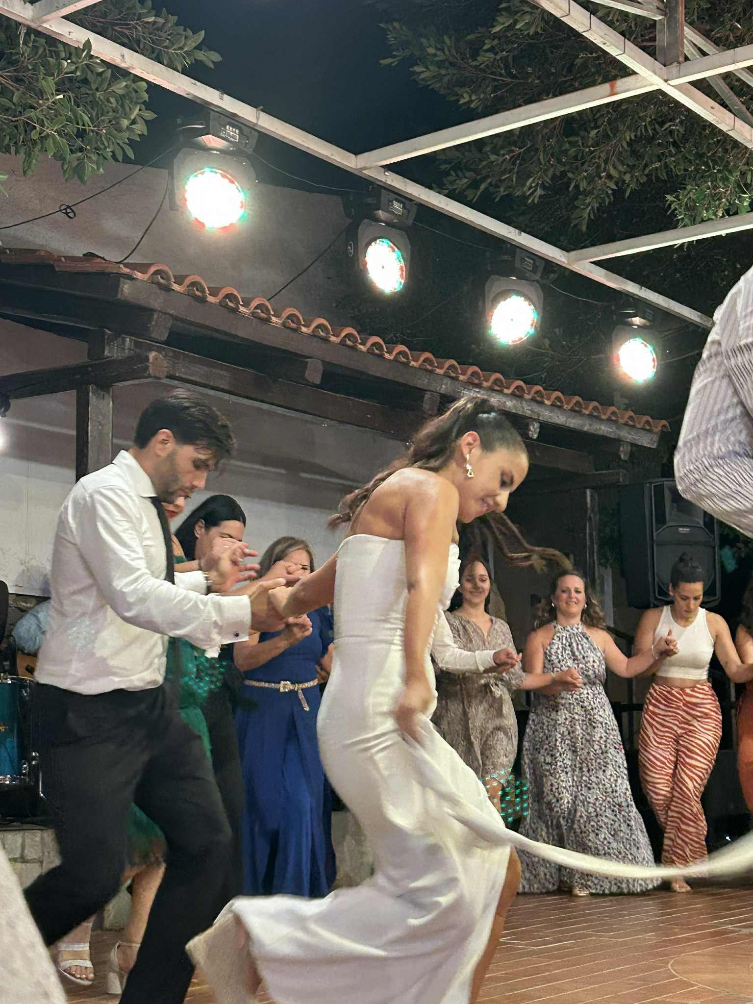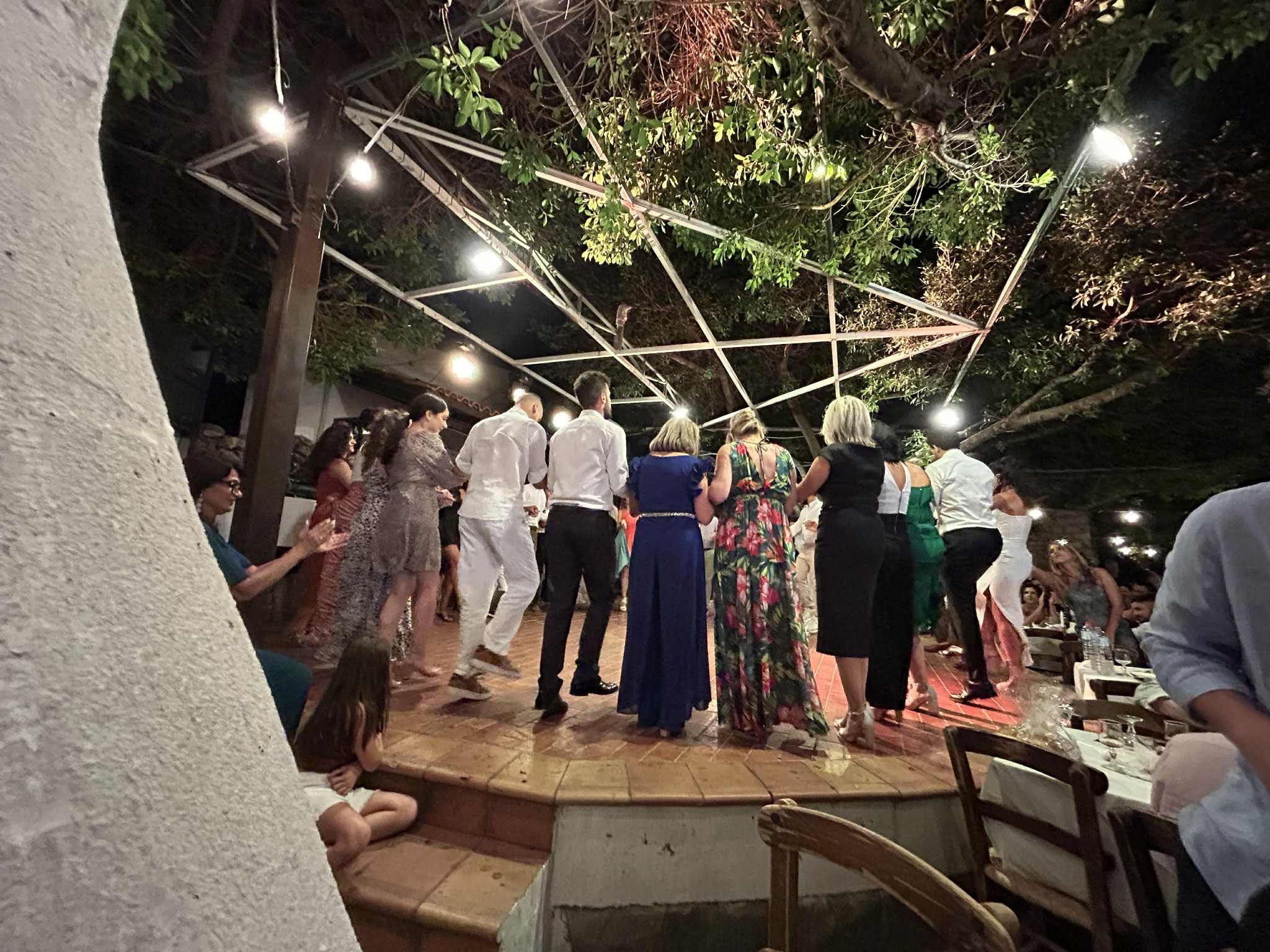 Το εντυπωσιακό ήταν ότι ο νέο ζευγάρι που είχε επιμεληθεί το πρόγραμμα της διασκέδασης φρόντισε ώστε να μην αδειάσει στιγμή η πίστα αφού οι φίλοι και οι συγγενείς χόρεψαν Κρητικούς, ξένους αλλά και λαϊκούς χορούς. Συγκινητική η στιγμή όταν η νύφη χόρεψε με τον πατέρα της την ώρα που και ο γαμπρός χόρευε με την μητέρα του.
