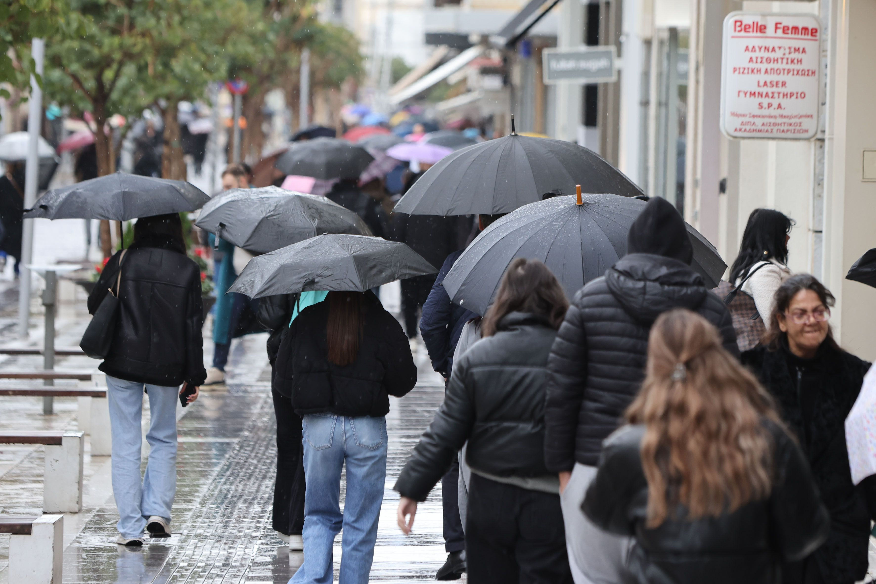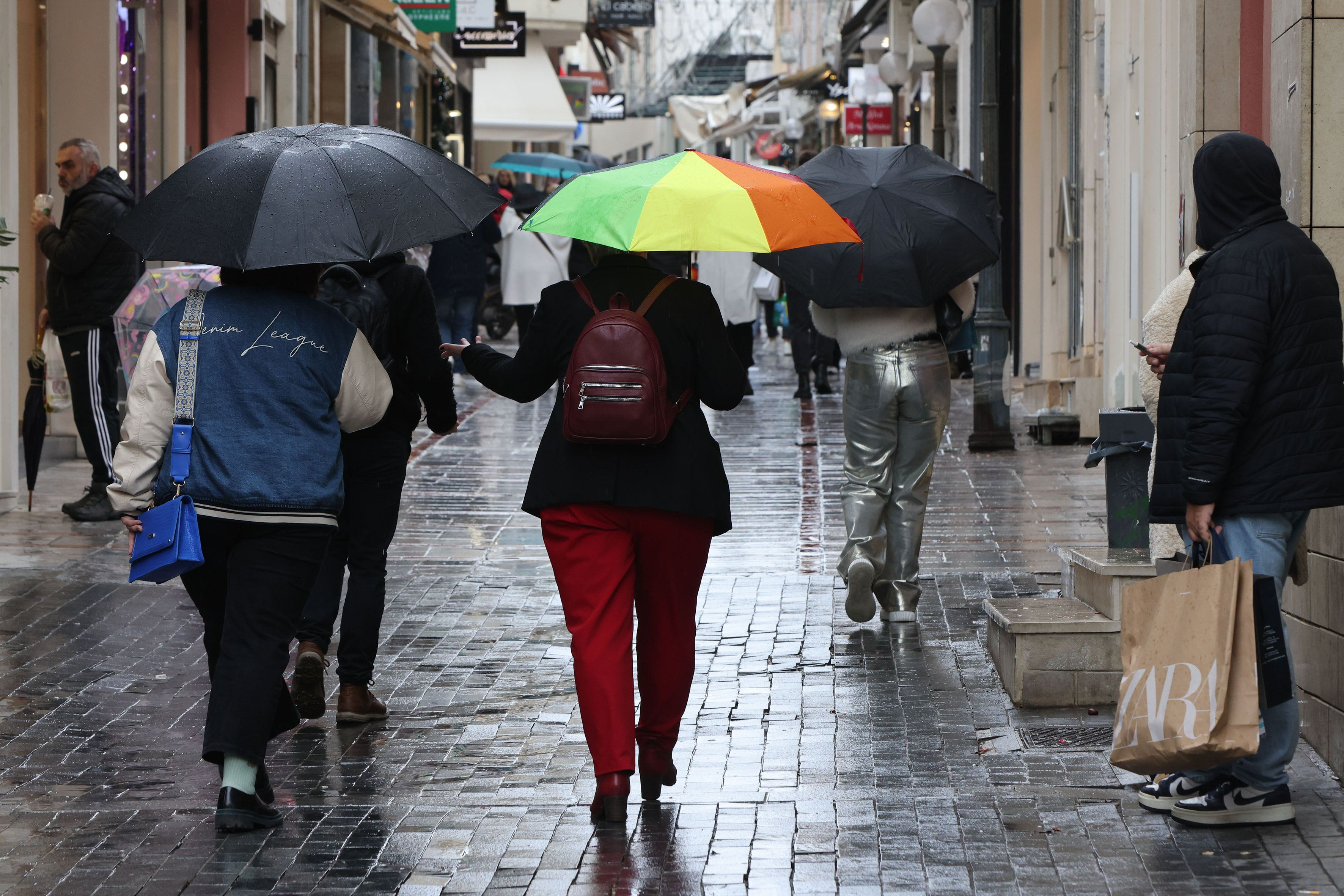 Η βροχή που πέφτει στο Ηράκλειο από το πρωί της Παρασκευής σχεδόν συνεχόμενα και με κυμαινόμενη ένταση δεν εμπόδισε τον κόσμο να κάνει τα ψώνια του, όπως φαίνεται και στις φωτογραφίες του Image Online.