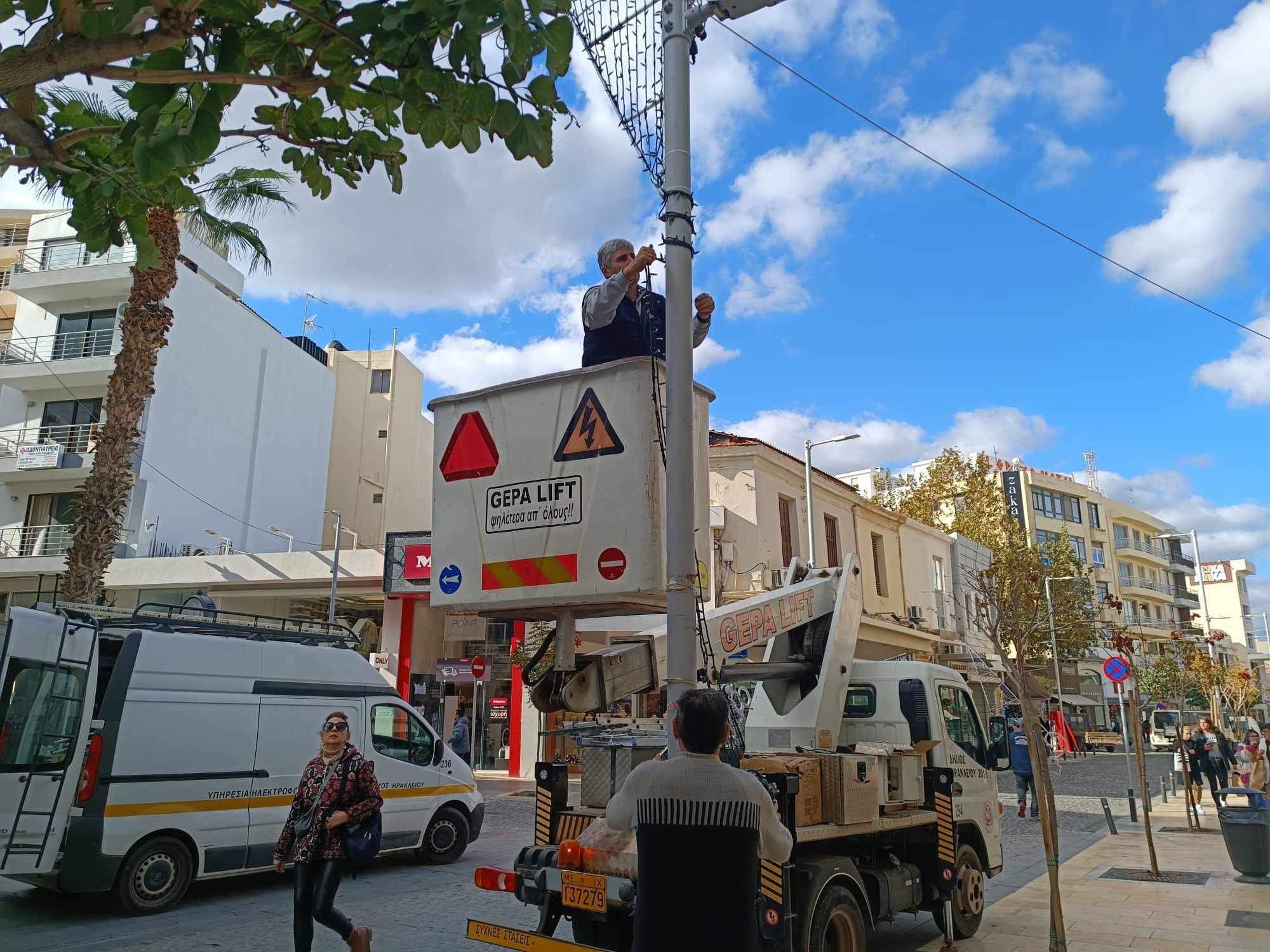 Τα εορταστικά λαμπάκια παίρνουν την θέση τους στους στύλους για να δώσουν το… απαραίτητο γιορτινό χρώμα.