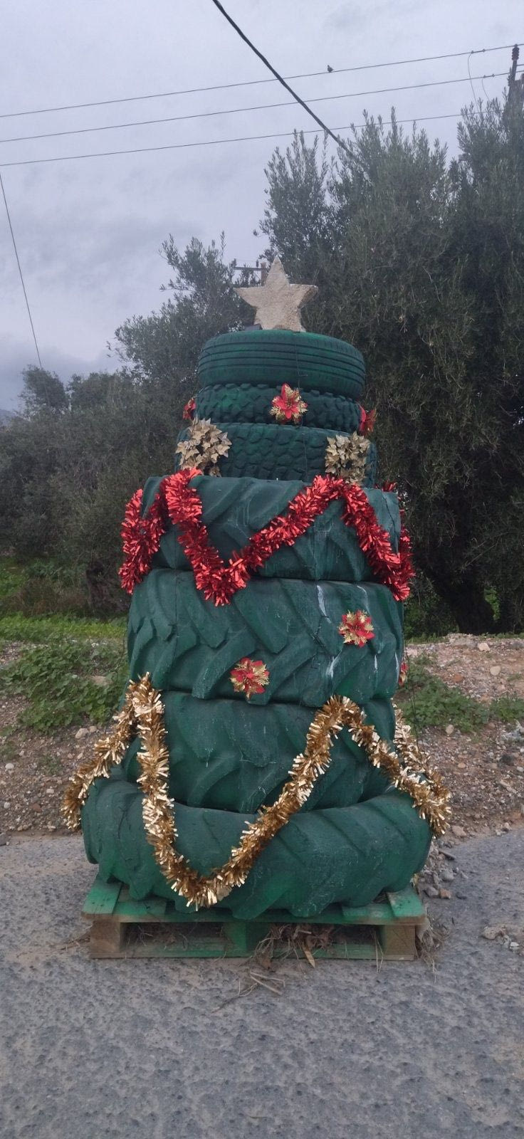 Μία πρωτότυπη ιδέα είχαν οι κάτοικοι της Γρα Λυγιάς στην Ιεράπετρα, οι όποιοι πήραν λάστιχα τα έβαψαν και δημιούργησαν ένα ιδιαίτερο χριστουγεννιάτικο δέντρο.