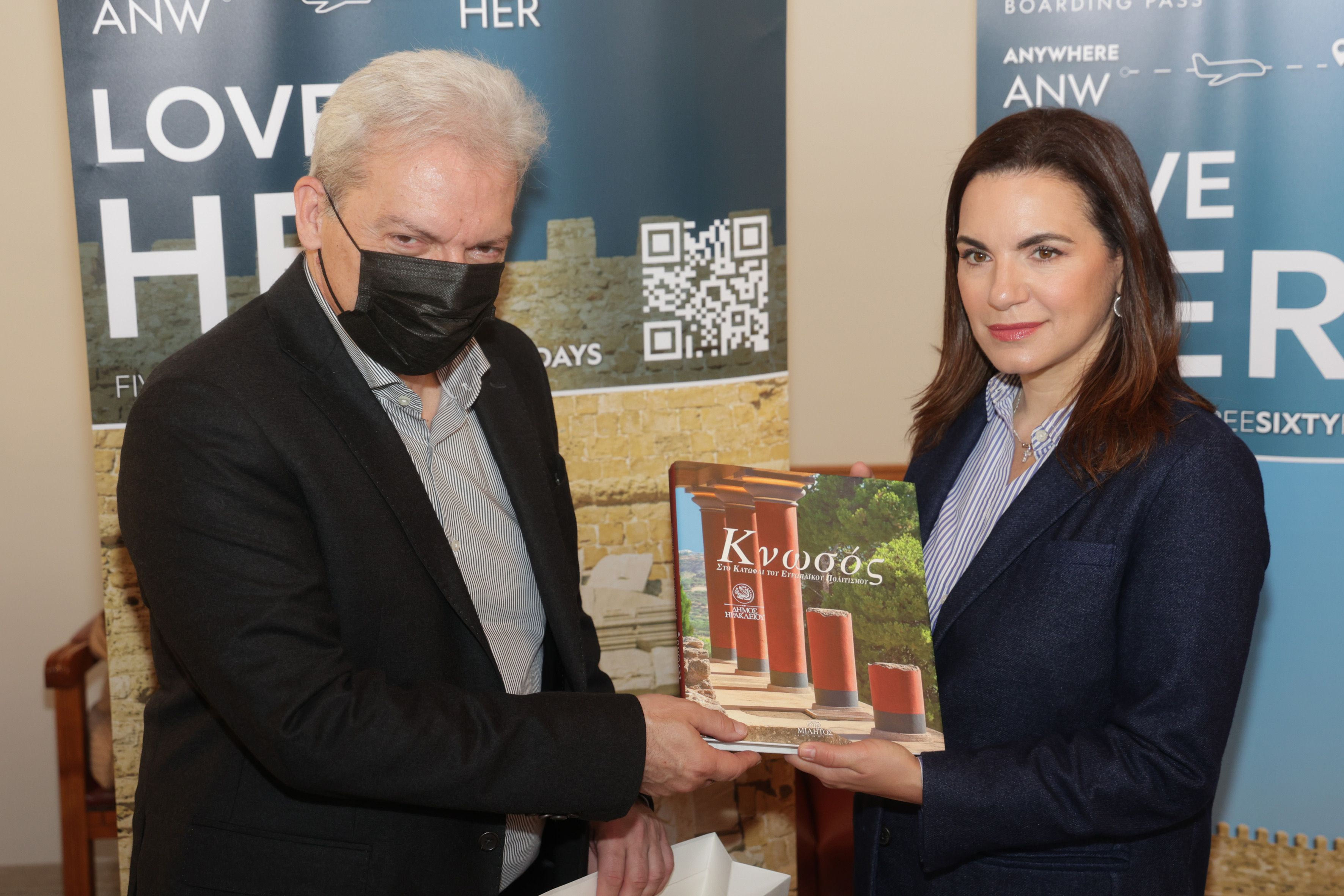 Με την ολοκλήρωση της υπογραφής του Μνημονίου Συνεργασίας, ο Δήμαρχος Ηρακλείου Αλέξης Καλοκαιρινός δώρισε στην Υπουργό Τουρισμού το βιβλίο Κνωσός του Γιάννη και της Έφης Σακελλαράκη.