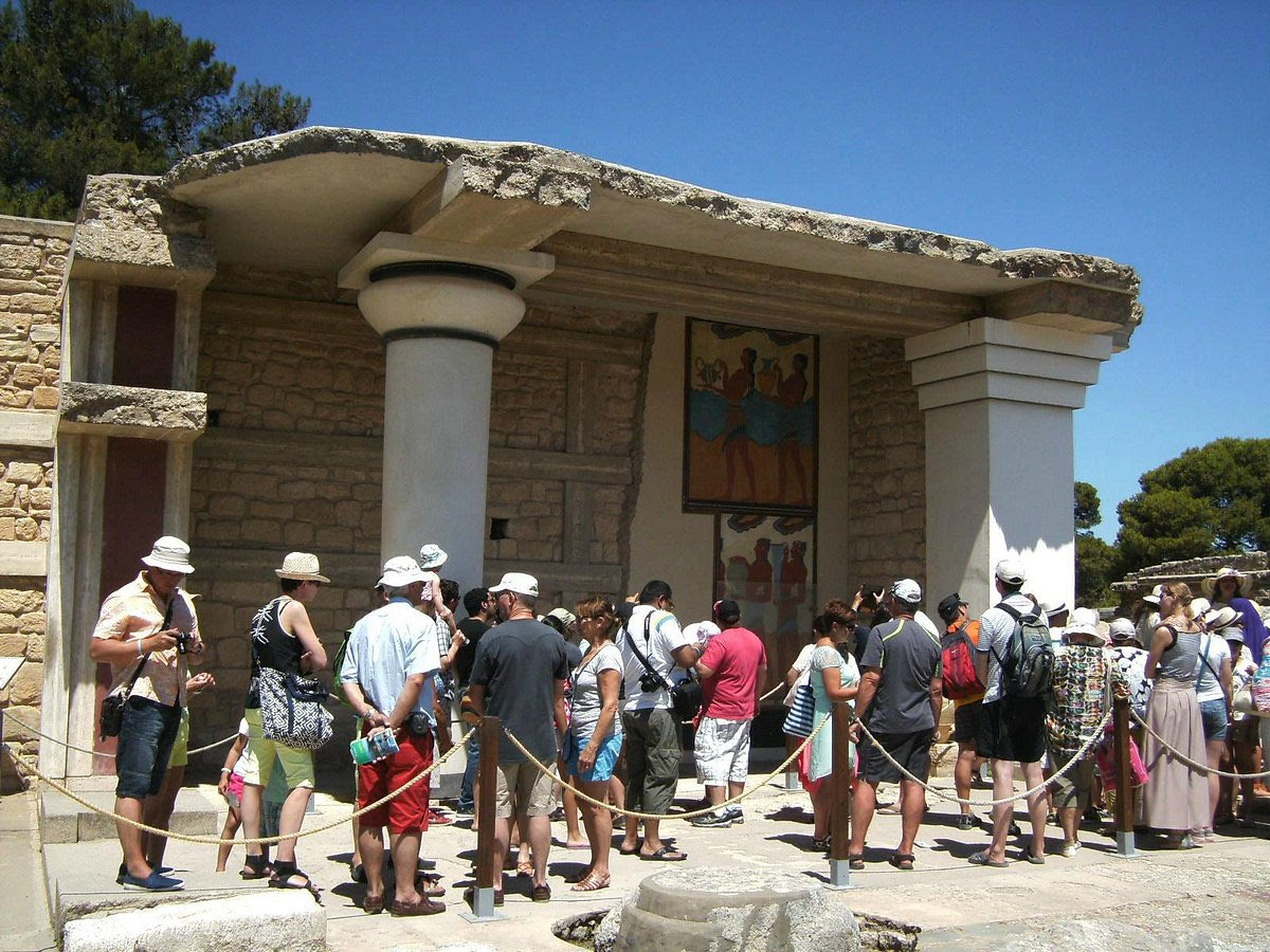 «Κάθε μέρα έχουμε 4.000-5.000 επισκέπτες κατά μέσο όρο και προσπαθούμε να ταλαιπωρούνται αυτοί οι άνθρωποι όσο γίνεται λιγότερο» είπε ο κ.Παπαδάκης, συμπληρώνοντας ότι περιμένουν τουλάχιστον 30 λεπτά στον ήλιο για να επισκεφθούν την αίθουσα του θρόνου.