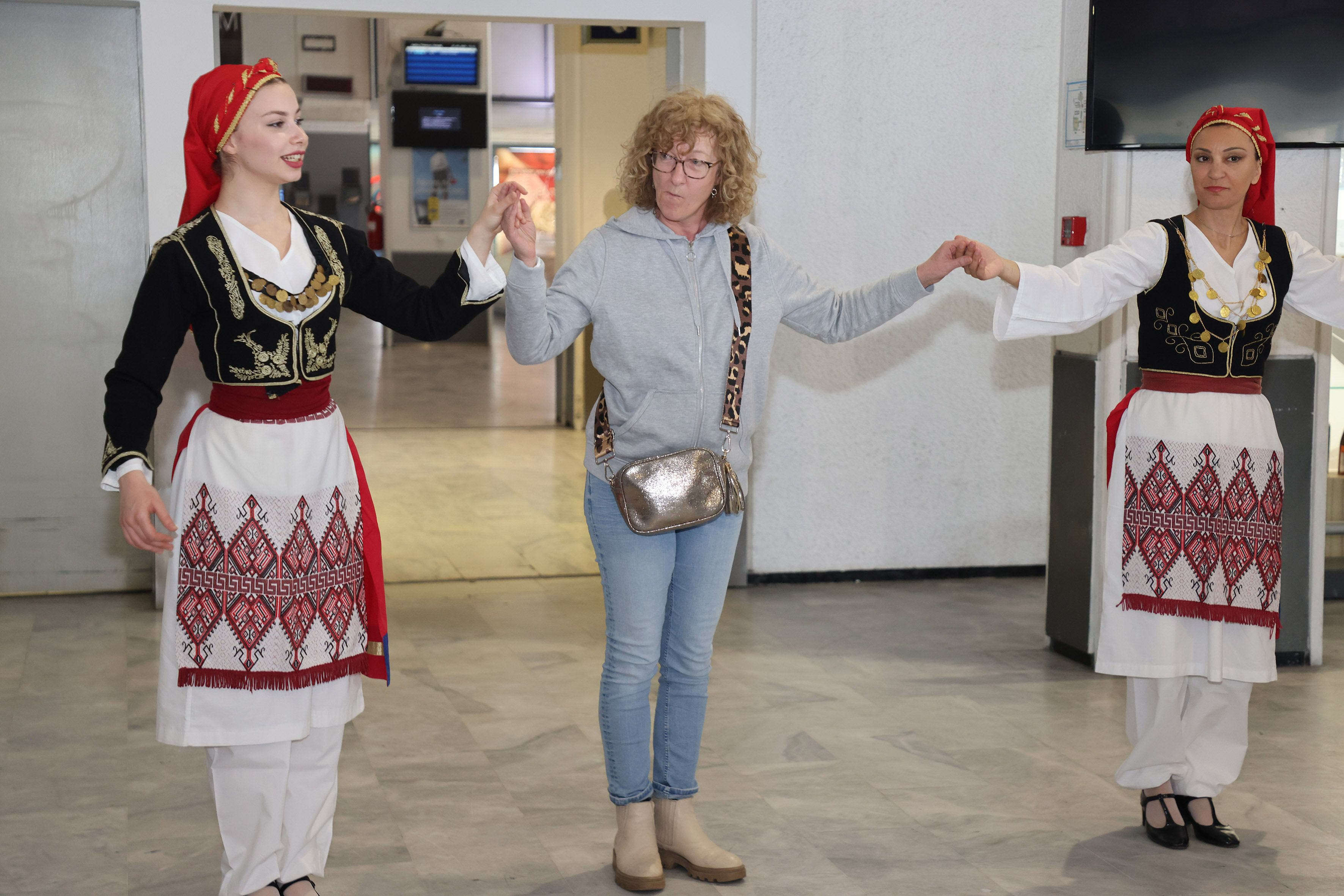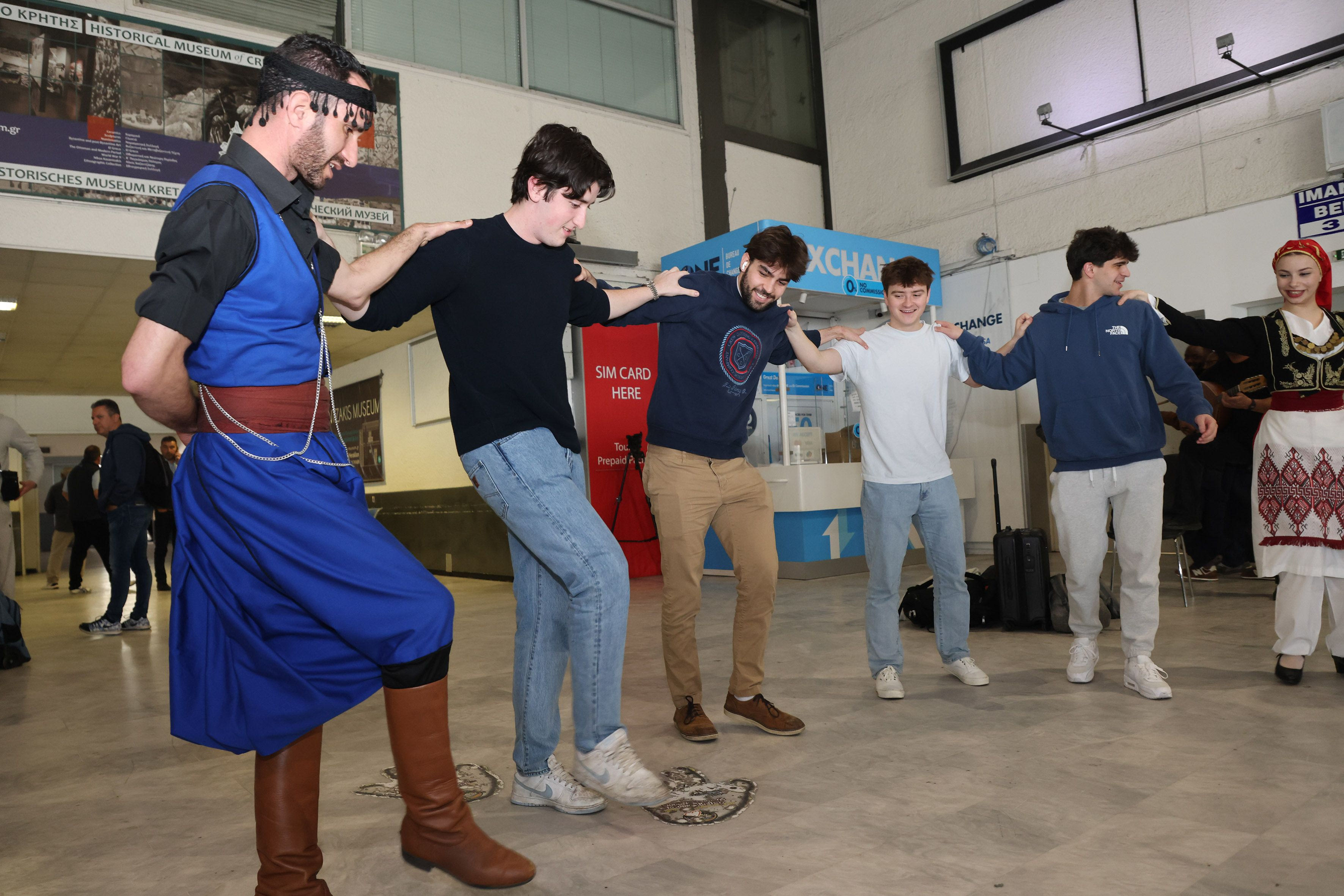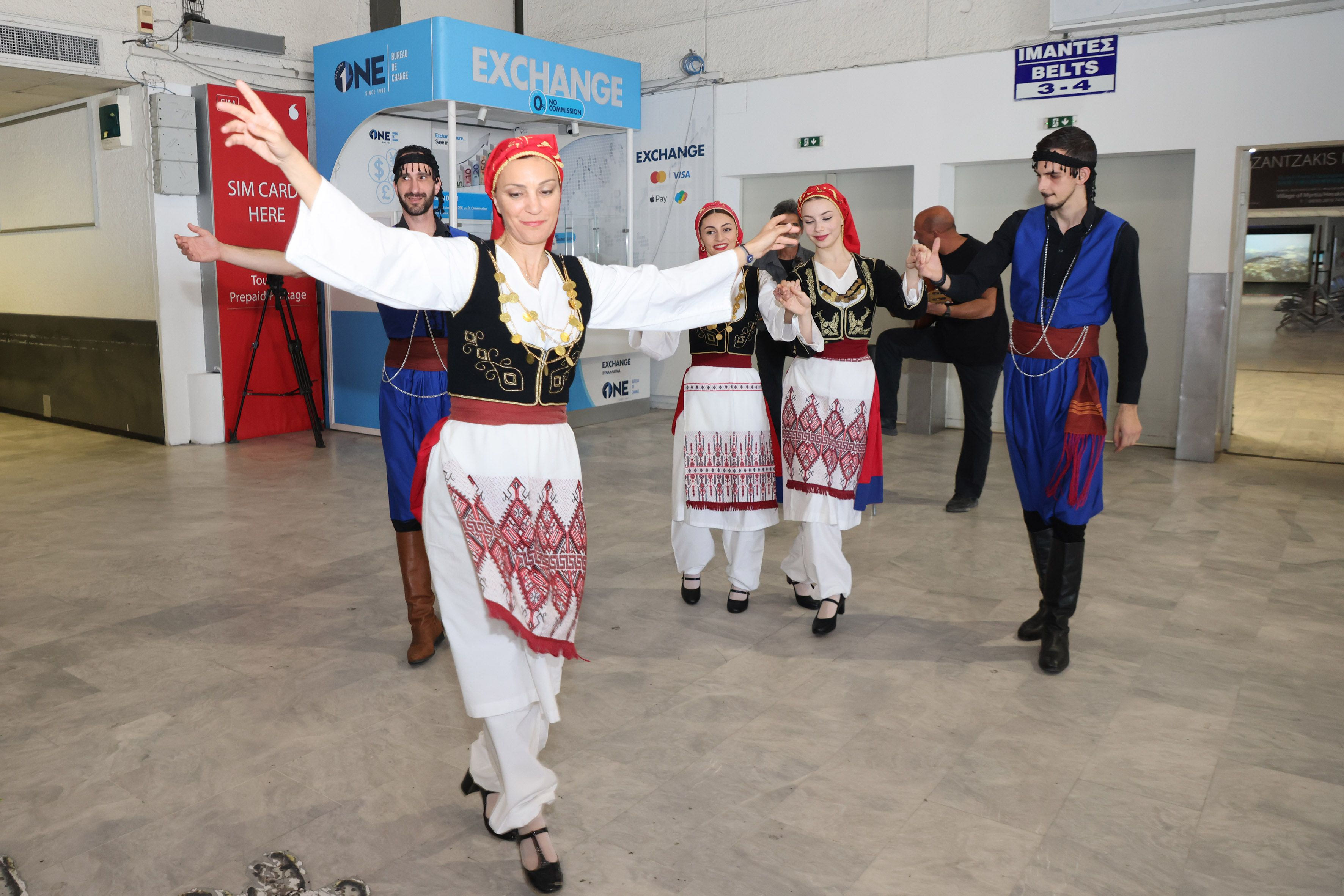 Παραδοσιακά, η πρώτη πτήση που προσγειώθηκε από το Λονδίνο στο ”Νίκος Καζαντζάκης” έτυχε θερμής υποδοχής, παρουσία του αερολιμενάρχη Ηρακλείου Ιάκωβου Ουρανού, του Αντιπεριφερειάρχη Νίκου Συριγωνάκη καθώς και μελών κρητικών συγκροτημάτων.